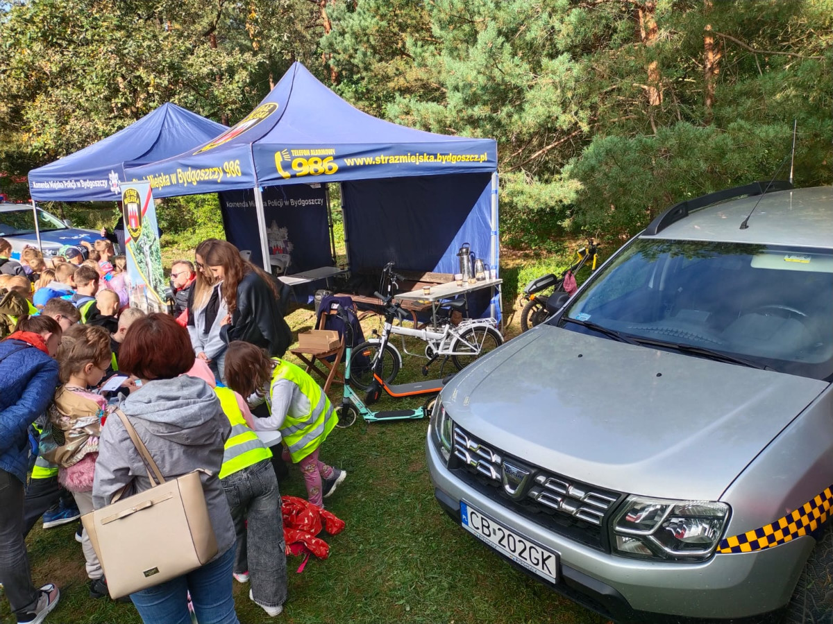 Opublikowano: 2025-09-26 09:43Wzorem lat ubiegłych, Straż Miejska w Bydgoszczy oraz Wydział Prewencji Komendy Miejskiej Policji w Bydgoszczy przygotowały akcję profilaktyczną pod nazwą „Akademia Bezpieczeństwa – bezpieczna droga do szkoły”, która była skierowana do uczniów szkół podstawowych z Bydgoszczy i powiatu bydgoskiego. Impreza odbyła się w dniach od 23 do 25 września br. na terenie Leśnego Parku Kultury i Wypoczynku „Myślęcinek” w Bydgoszczy, obok miasteczka rowerowego przy ul. Hipicznej.