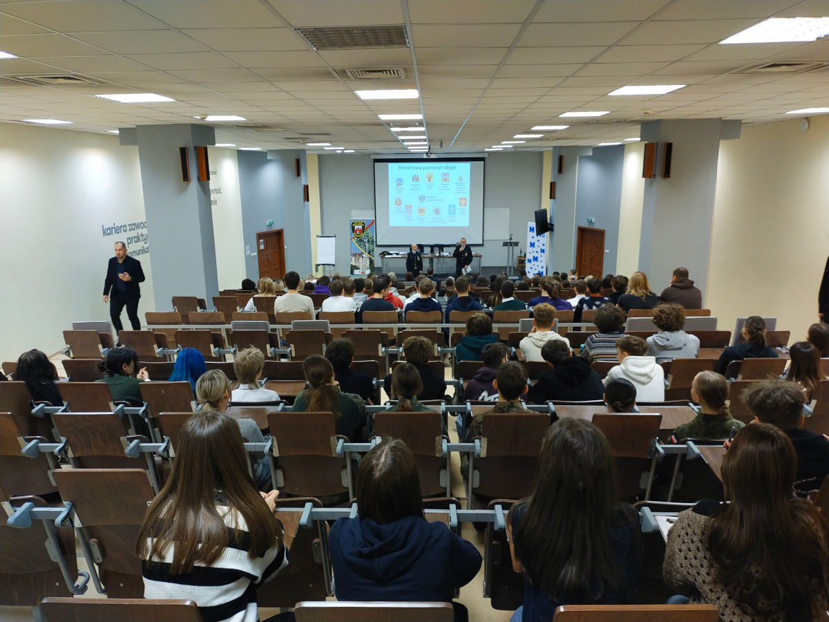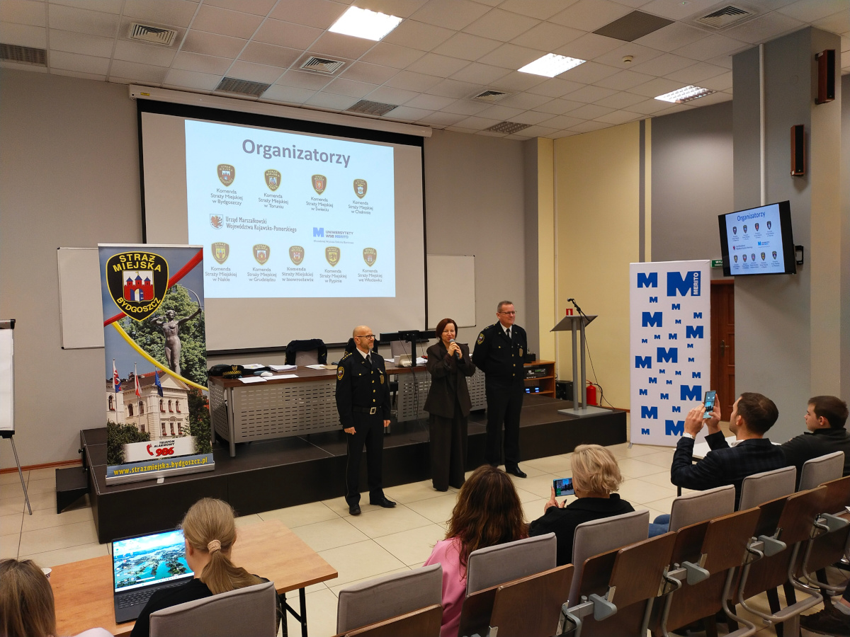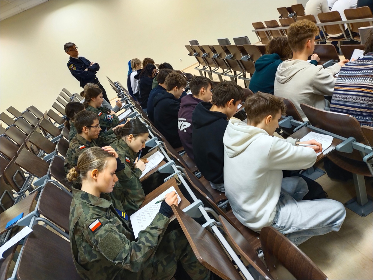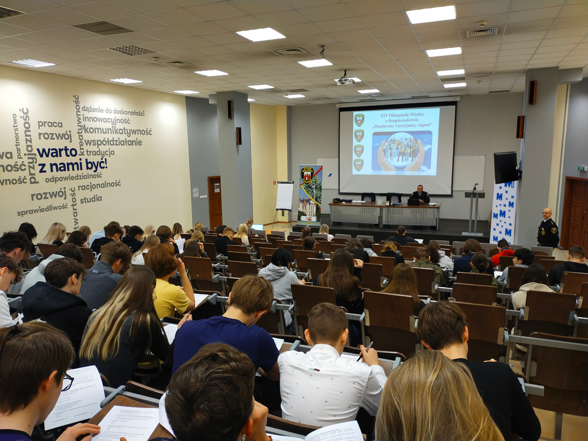 Opublikowano: 2026-01-23 13:30W piątek 23 stycznia 2026 roku Straż Miejska w Bydgoszczy przeprowadziła pierwszy z trzech etapów XIV Olimpiady Wiedzy o Bezpieczeństwie „Bezpieczny i przyjazny region.” Jej uczestnicy pisali test w auli budynku Uniwersytetu WSB Merito w Bydgoszczy przy ul. Fordońskiej 74. Olimpiada zorganizowana została dla młodzieży szkół średnich z Województwa Kujawsko – Pomorskiego. Patronat nad nią objęli prezydenci i burmistrzowie miast, reprezentowani przez straże miejskie organizujące olimpiadę, a także Wojewoda Kujawsko – Pomorski, Kujawsko – Pomorski Kurator Oświaty, Marszałek Województwa Kujawsko – Pomorskiego oraz Rektor Uniwersytetu WSB Merito w Bydgoszczy.