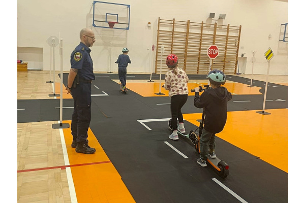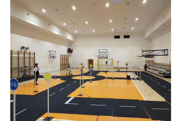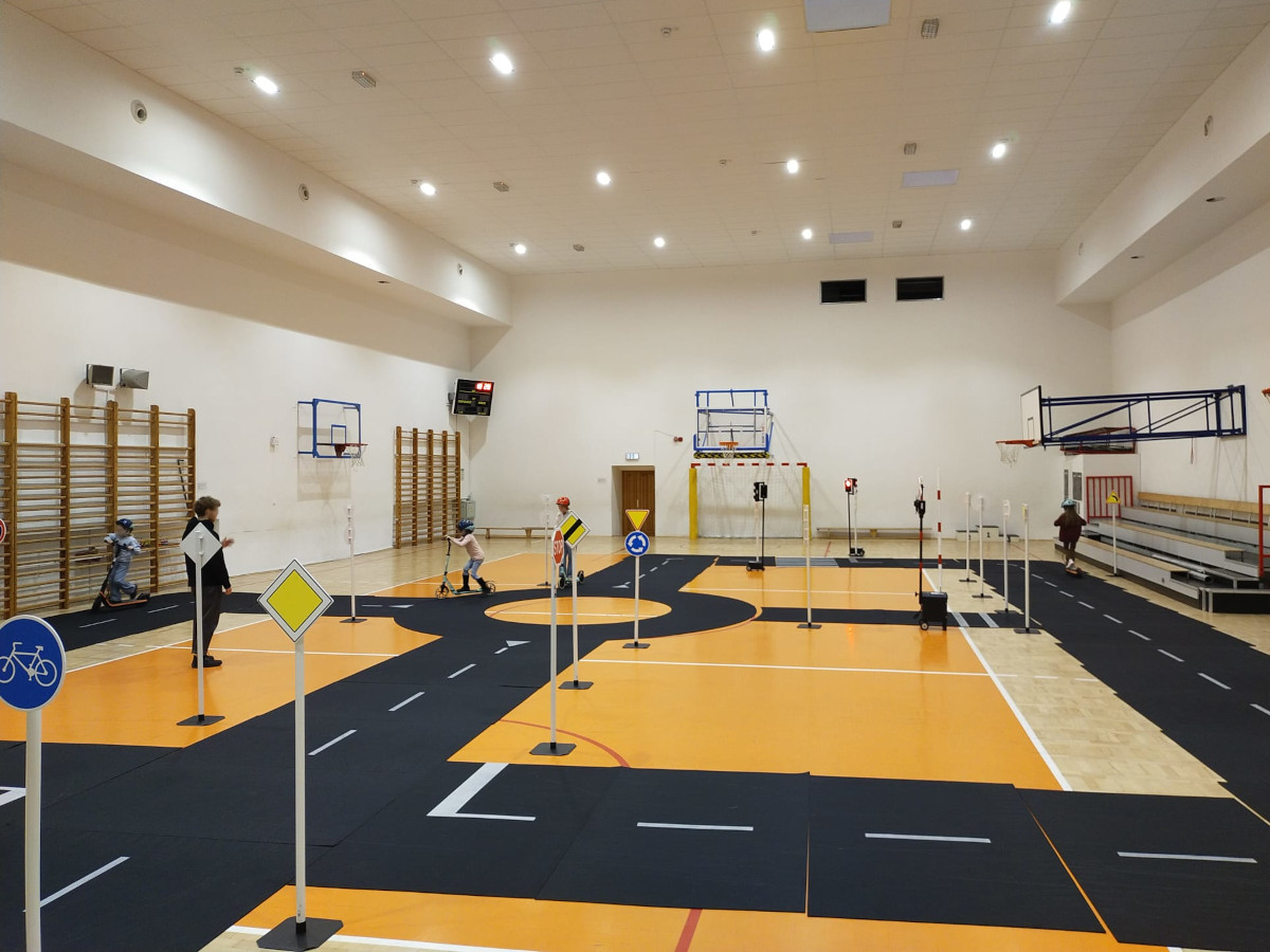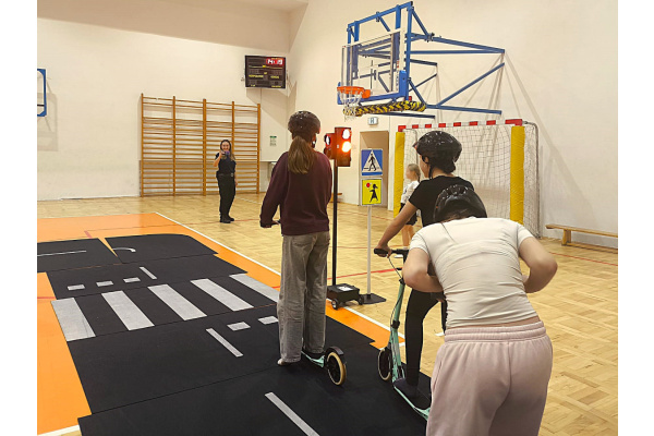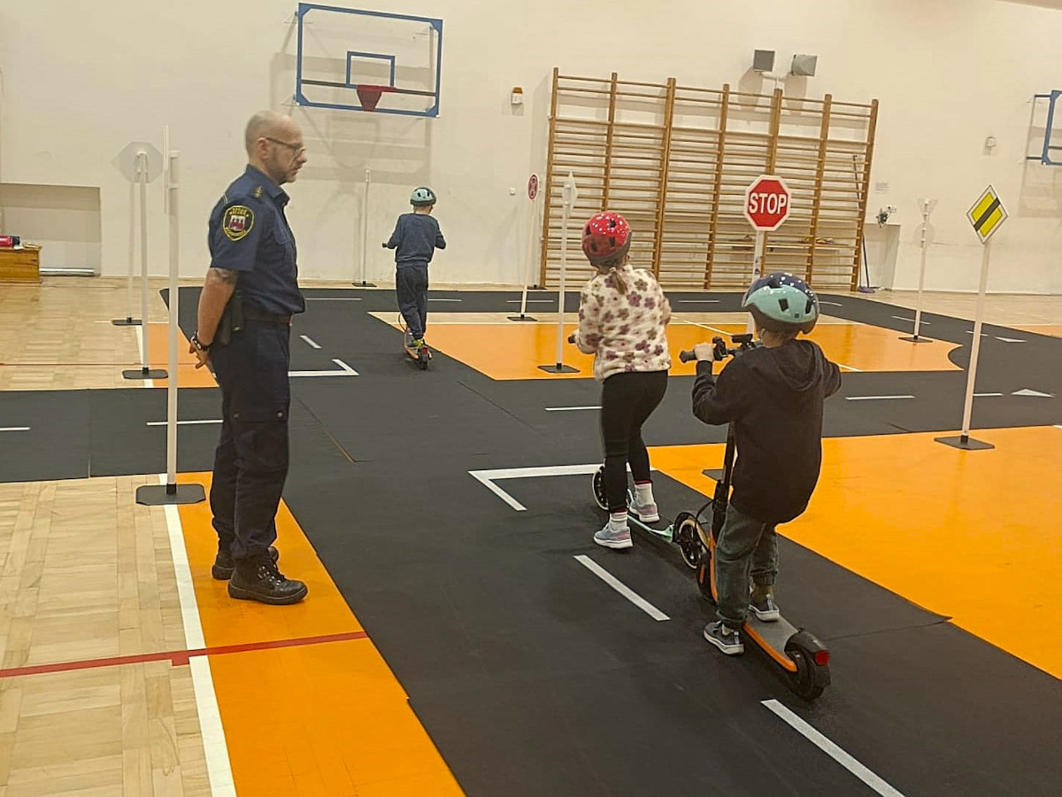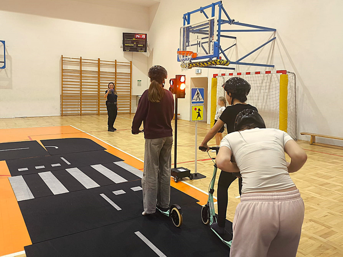 Ponadto w czasie trwania ferii prowadziliśmy także zajęcia profilaktyczne dla dzieci przebywającymi w bydgoskich świetlicach środowiskowych oraz na półkoloniach w Pałacu Młodzieży. Podczas tych spotkań uczyliśmy nie tylko podstawowych zasad bezpieczeństwa w odniesieniu do oblodzonych akwenów wodnych oraz bezpiecznej zabawy na śniegu, ale również przypominaliśmy dzieciom, jak bezpiecznie poruszać się po drogach publicznych na rowerach i hulajnogach oraz hulajnogach elektrycznych. Dla lepszego zrozumienia podstawowych zasad ruchu drogowego, wykorzystywaliśmy nasze mobilne miasteczko rowerowe, które rozłożyliśmy na całej sali gimnastycznej bydgoskiego Pałacu Młodzieży. A szkolone przez nas dzieci miały okazję praktycznie sprawdzić swoje umiejętności jazdy na naszych rowerach, hulajnogach i hulajnogach elektrycznych.