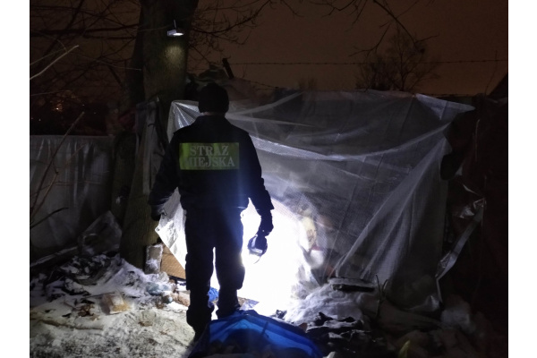 Opublikowano: 2026-02-17 14:14W związku z utrzymującymi się ujemnymi temperaturami, strażnicy w ramach pełnionej służby patrolowej kontynuują kontrole miejsc przebywania osób bezdomnych ze szczególnym ich nasileniem w porze nocnej. Na podstawie sporządzonej wcześniej tzw. mapy bezdomności, bydgoscy strażnicy miejscy tylko w okresie od 1 stycznia do 16 lutego 2026 roku przeprowadzili łącznie 463 kontrole, głównie w porze nocnej, gdy temperatura spadała poniżej 0o C. Podczas tych działań funkcjonariusze dotarli do 443 osób (w tym wielokrotne interwencje wobec tych samych osób). Tylko w 9 przypadkach bezdomni zdecydowali się na przyjęcie pomocy i zostali przewiezieni do schroniska lub noclegowni, 9 osób dowieziono do wytrzeźwienia, a 423 bezdomnych odmówiło przyjęcia pomocy.