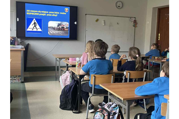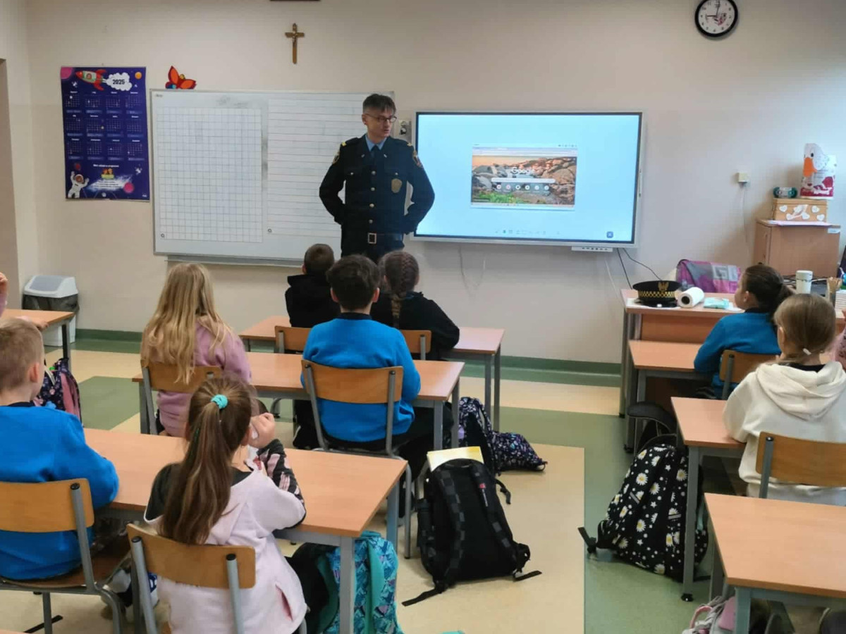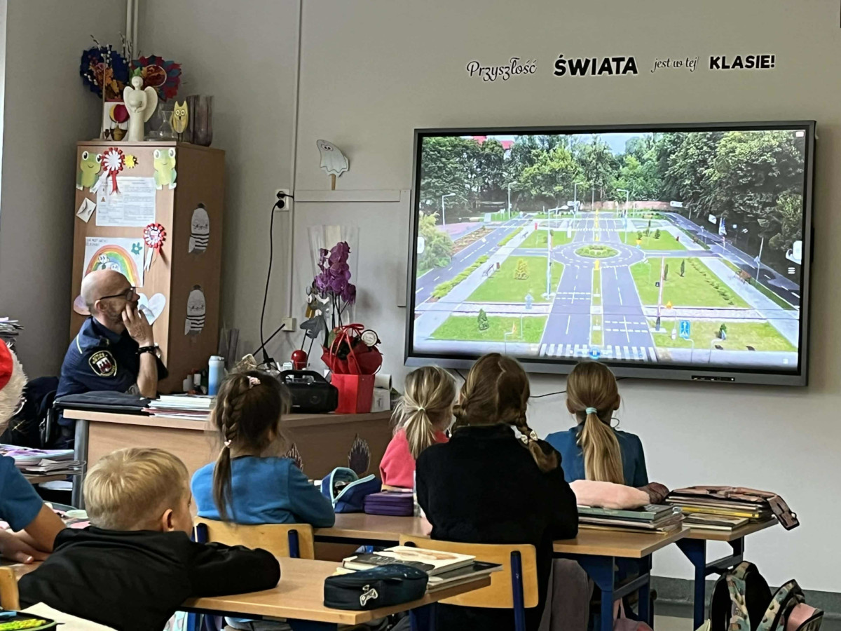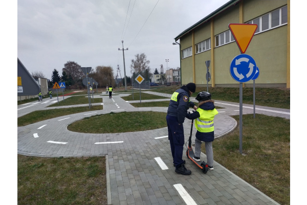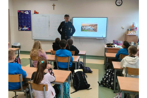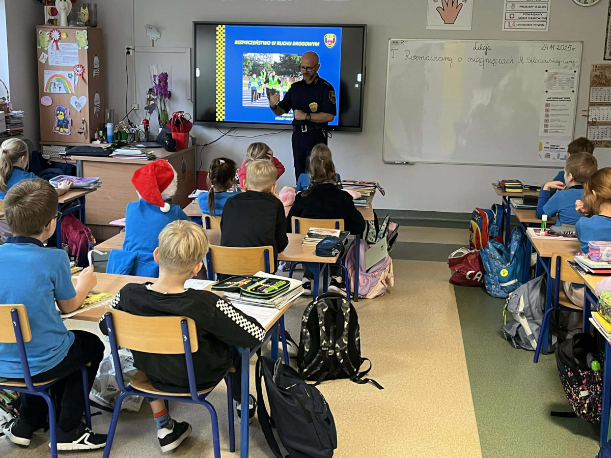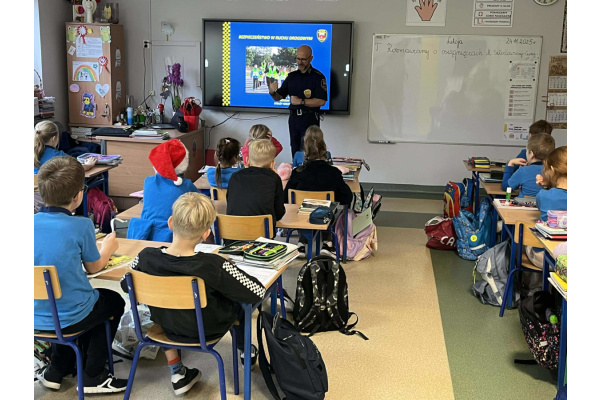 Opublikowano: 2025-11-27 14:18W poniedziałek 24 listopada br. w ramach akcji „Odblaskowa szkoła”, strażnicy miejscy w Szkole Podstawowej nr 40 przy ul. Puszczykowej 11 w Bydgoszczy przeprowadzili teoretyczne i praktyczne zajęcia profilaktyczne dotyczące przestrzegania zasad ruchu drogowego. Po zajęciach w klasach każde dziecko mogło w praktyce przećwiczyć podstawowe zasady przepisów ruchu drogowego na przyszkolnym miasteczku rowerowym. Uczniowie poruszali się na przywiezionych przez nas rowerach i hulajnogach elektrycznych lub zwykłych. W trakcie tej akcji strażnicy miejscy popularyzowali również noszenie różnego rodzaju elementów odblaskowych, które jak wszyscy wiemy, szczególnie o tej porze roku poprawiają bezpieczeństwo na naszych drogach. Dlatego też na zakończenie naszych działań każdy uczeń otrzymał od nas przywieszki odblaskowe lub samozaciskowe taśmy odblaskowe oraz kolorowanki uczące przestrzegania przepisów ruchu drogowego. Natomiast szkoła otrzymała kamizelki odblaskowe. W akcji uczestniczyło ok. 150 dzieci.